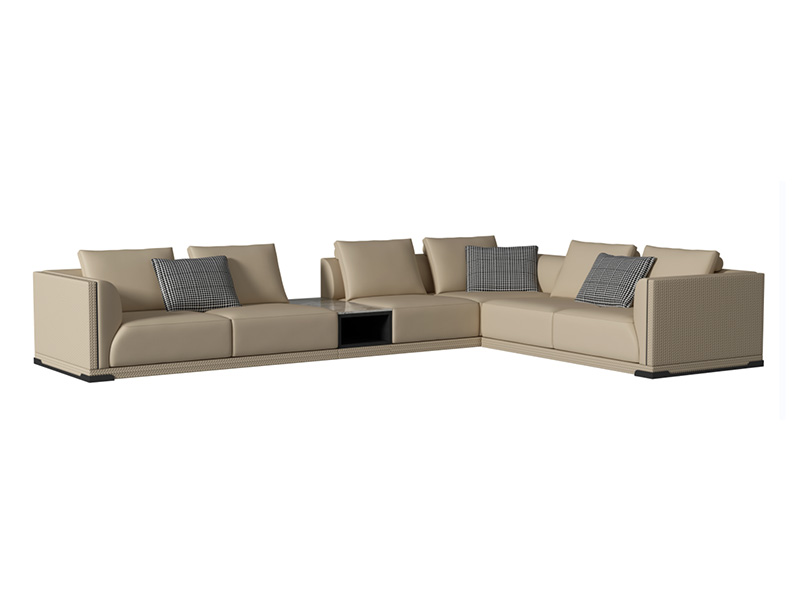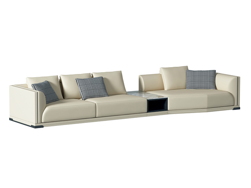 进口头层黄牛皮(B级BC系列/西皮配皮))+高密度回弹海绵+实木内架+不锈钢黑钛底架+饰边条+压纹皮工艺+鹅绒填充靠包