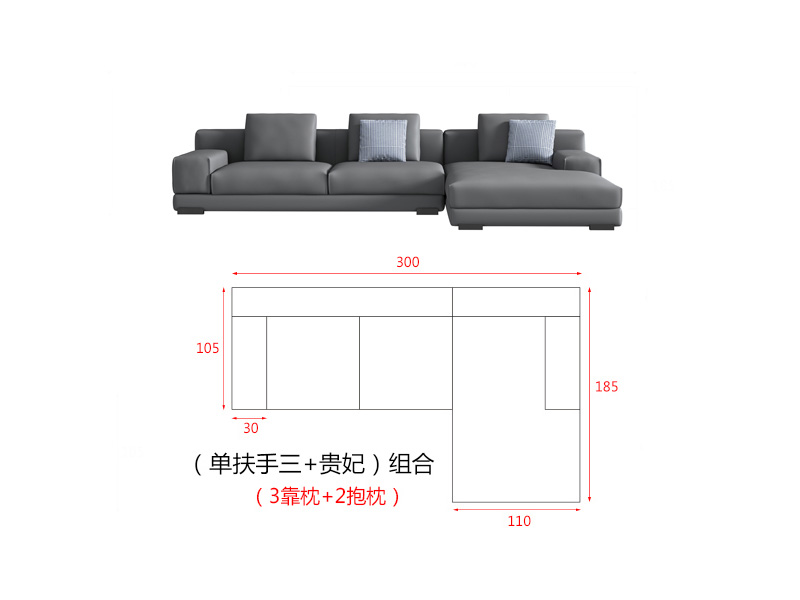 | (单扶手三位+贵妃)组合 | 300*105/185*70 |