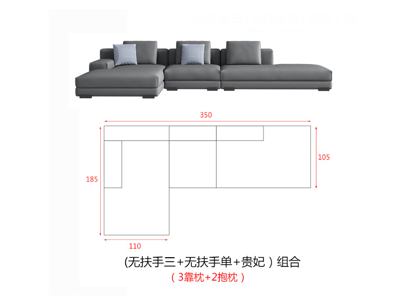 | (无扶手三位+无扶手单位+贵妃)组合 | 350*105/185*70 |